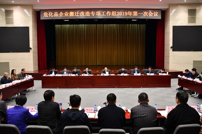 2019年4月12日,推進城鎮人口密集區危險化學品生產企業搬遷改造專項工作組(下稱“專項工作組”)2019年第一次會議在工業和信息化部召開。專項工作組組長、工業和信息化部黨組成員、副部長王江平出席會議并講話,專項工作組辦公室主任、工業和信息化部原材料工業司司長王偉主持會議。石油和化學工業規劃院白頤副院長帶隊參加了會議。