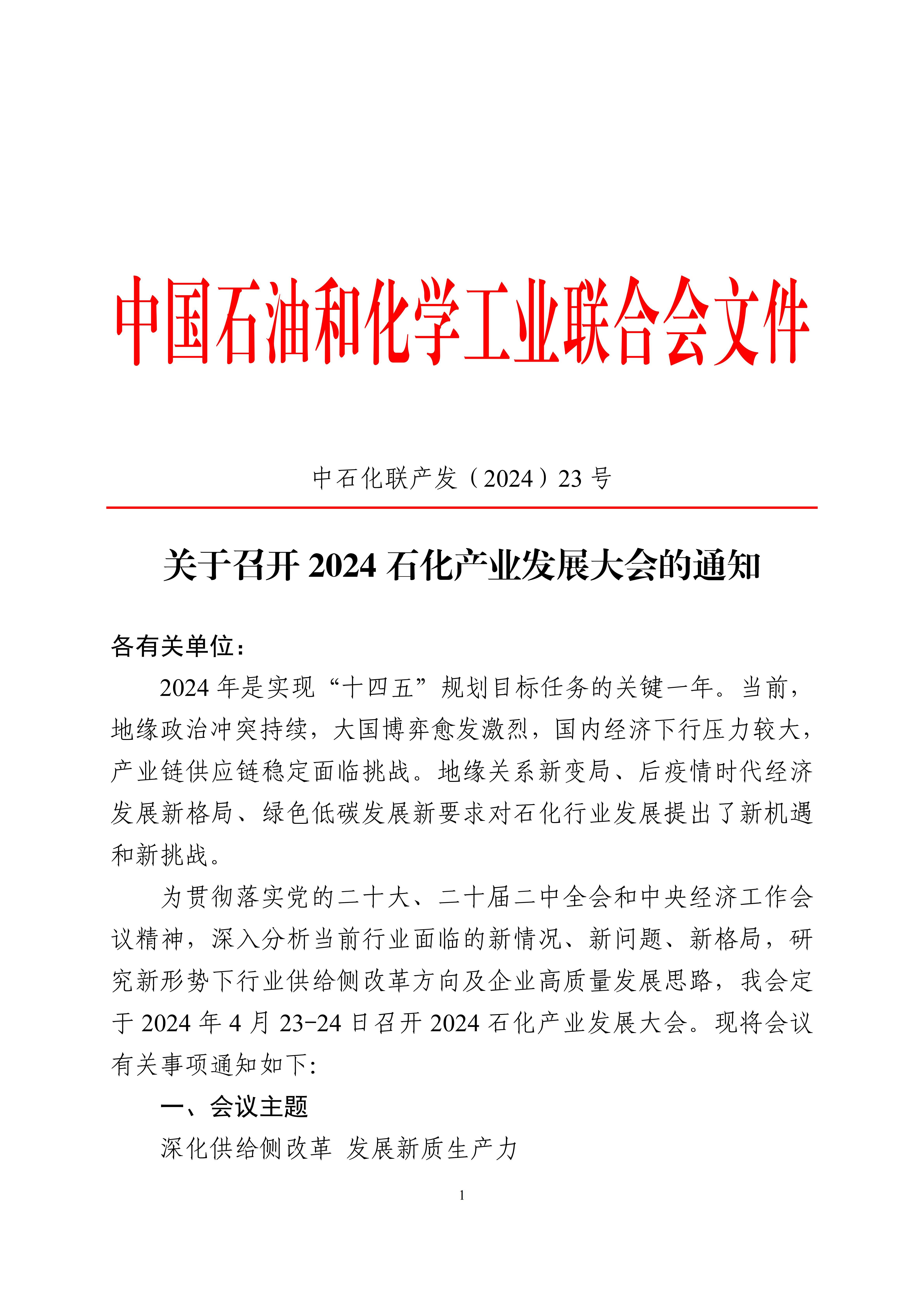 2024年4月23-24日,中國石油和化學(xué)工業(yè)聯(lián)合會(huì)將在北京召開《2024石化產(chǎn)業(yè)發(fā)展大會(huì)》,會(huì)議安排石油和化學(xué)工業(yè)規(guī)劃院組織“規(guī)劃發(fā)展研討會(huì)專場”,本次研討會(huì)主題是:石化化工領(lǐng)域之未來產(chǎn)業(yè)研究。